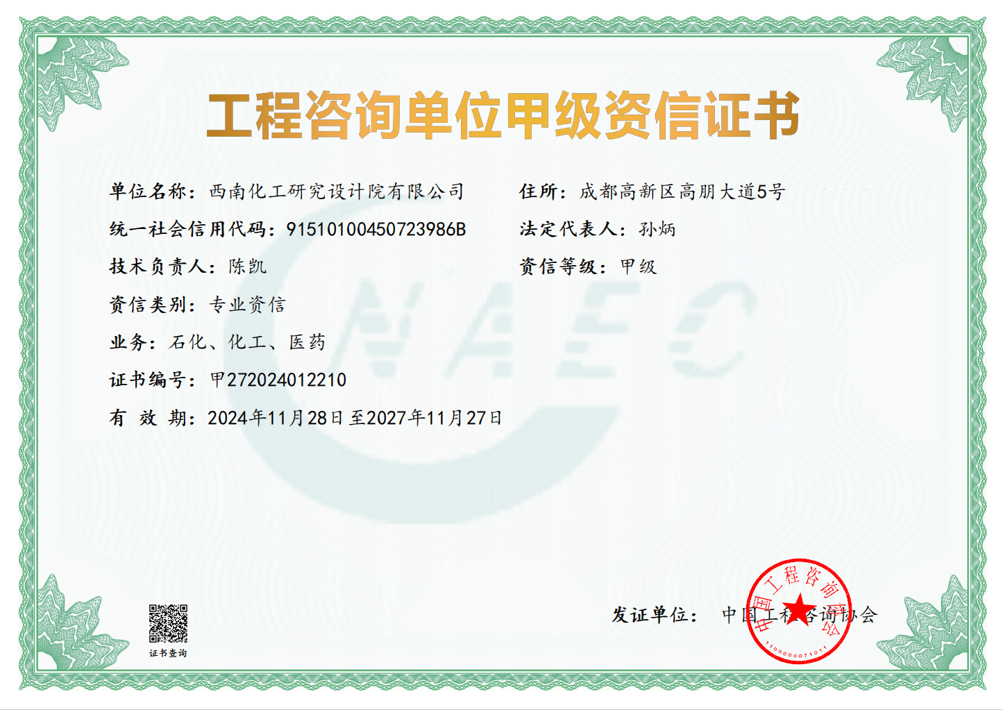 工程咨询单位甲级资信证书